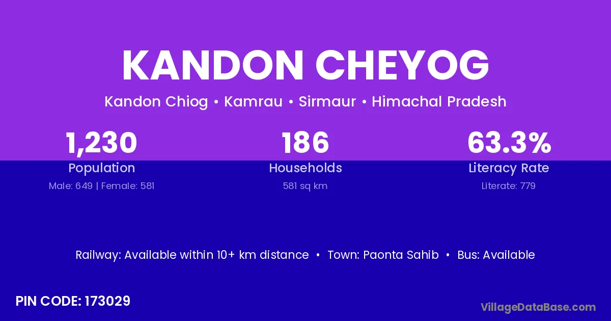 Paonta Sahib is the nearest town to Kandon Cheyog village for major economic activities