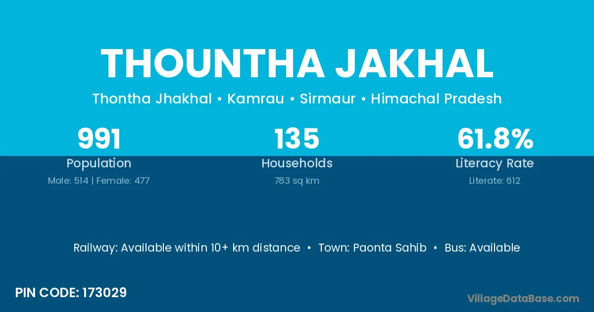 According to Census 2011 information, the village code of Thountha Jakhal village is 173029.