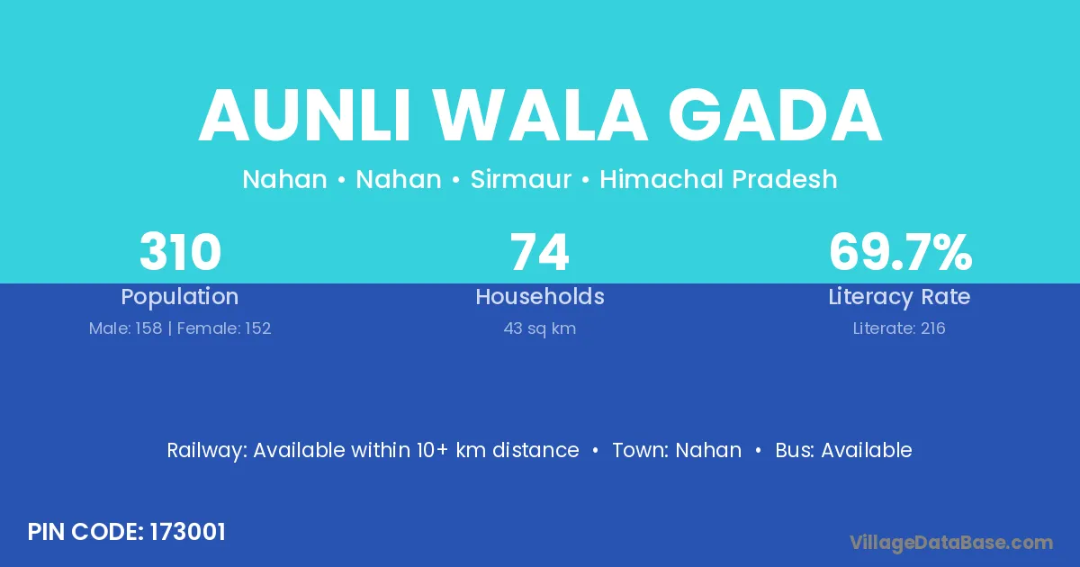 Nahan is the nearest town to Aunli Wala Gada village for major economic activities