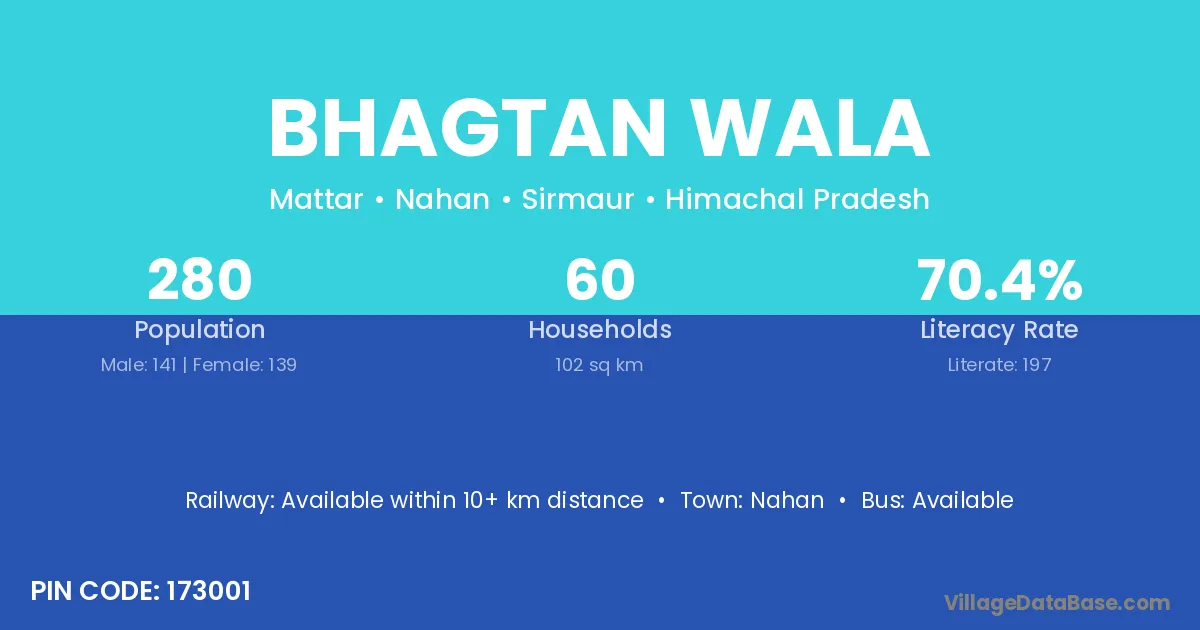 Nahan is the nearest town to Bhagtan Wala village for major economic activities