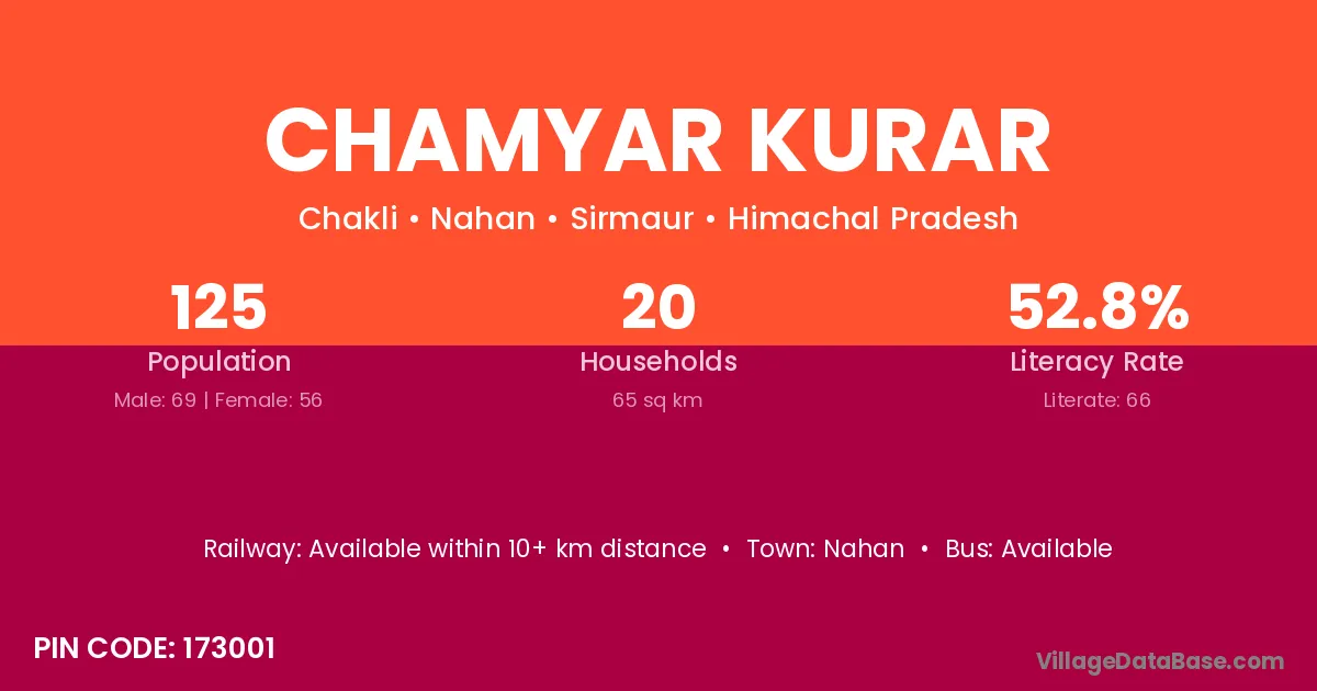 Chamyar Kurar village has a total population of 125 people, of which 69 are males and 56 are females.