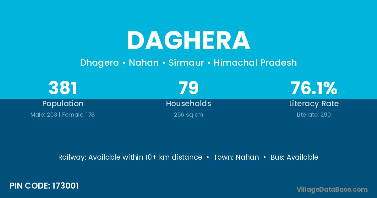 Daghera village has a total population of 381 people, of which 203 are males and 178 are females.