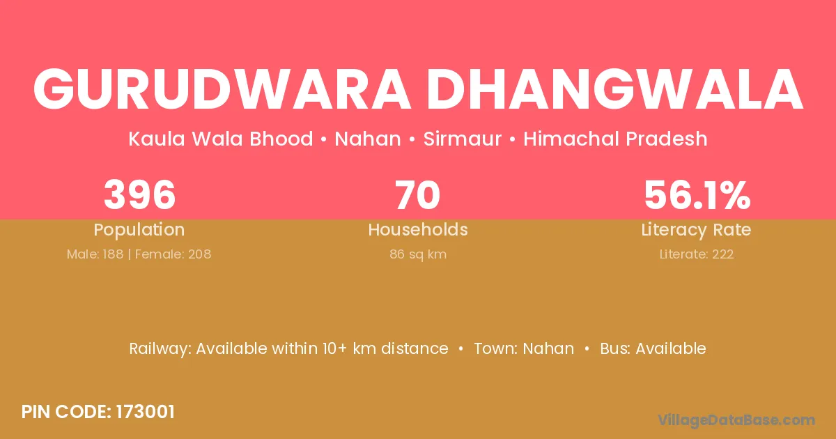 According to Census 2011 information, the village code of Gurudwara Dhangwala village is 173001.
