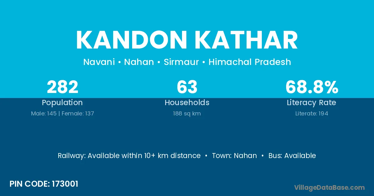 Nahan is the nearest town to Kandon Kathar village for major economic activities