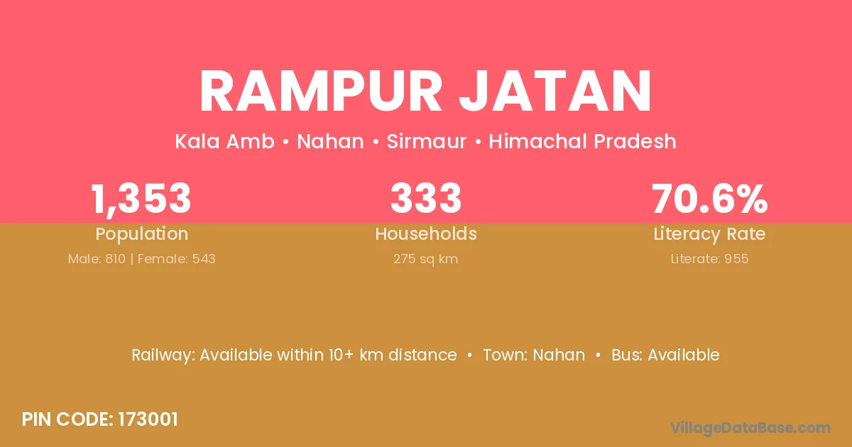 Rampur Jatan village has a total population of 1,353 people, of which 810 are males and 543 are females.