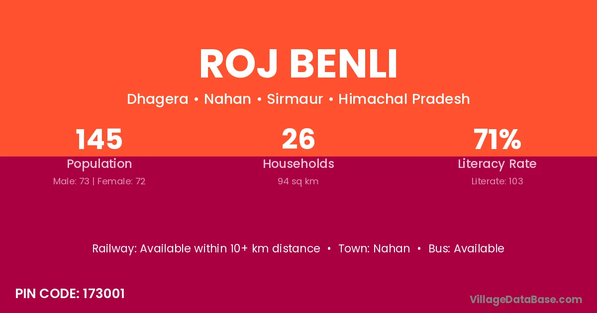 According to Census 2011 information, the village code of Roj Benli village is 173001.