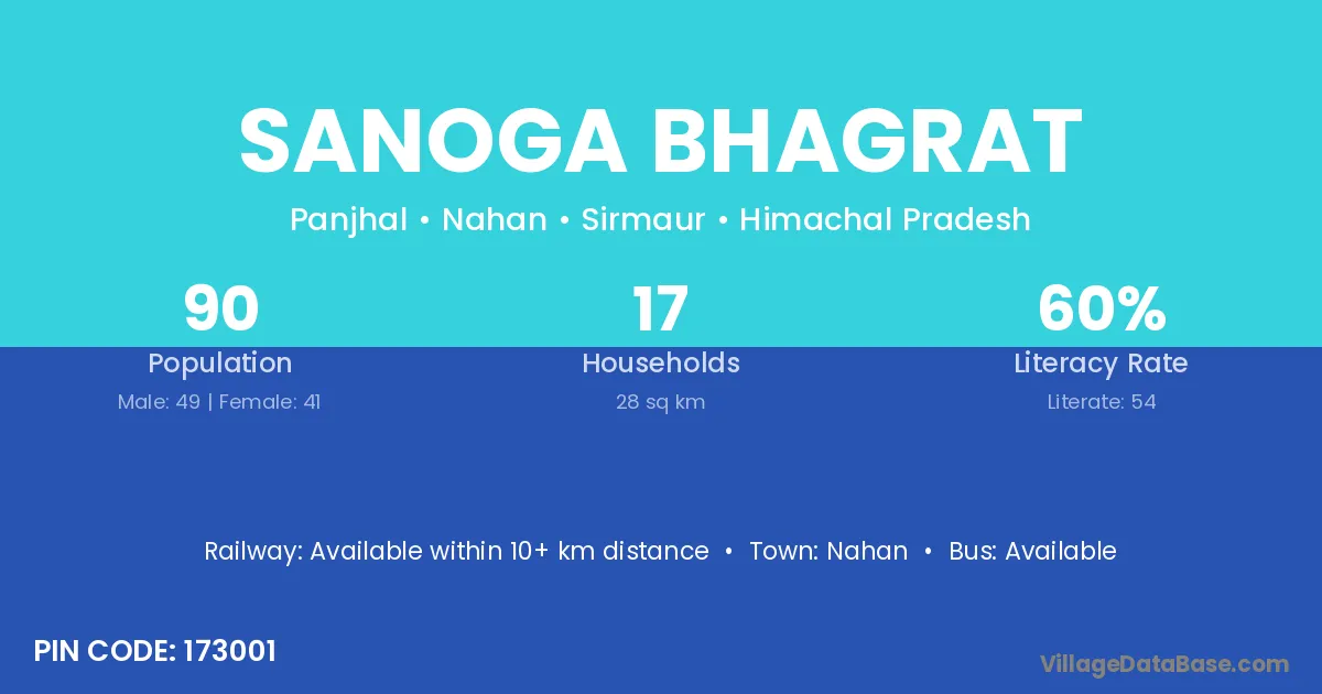 Nahan is the nearest town to Sanoga Bhagrat village for major economic activities