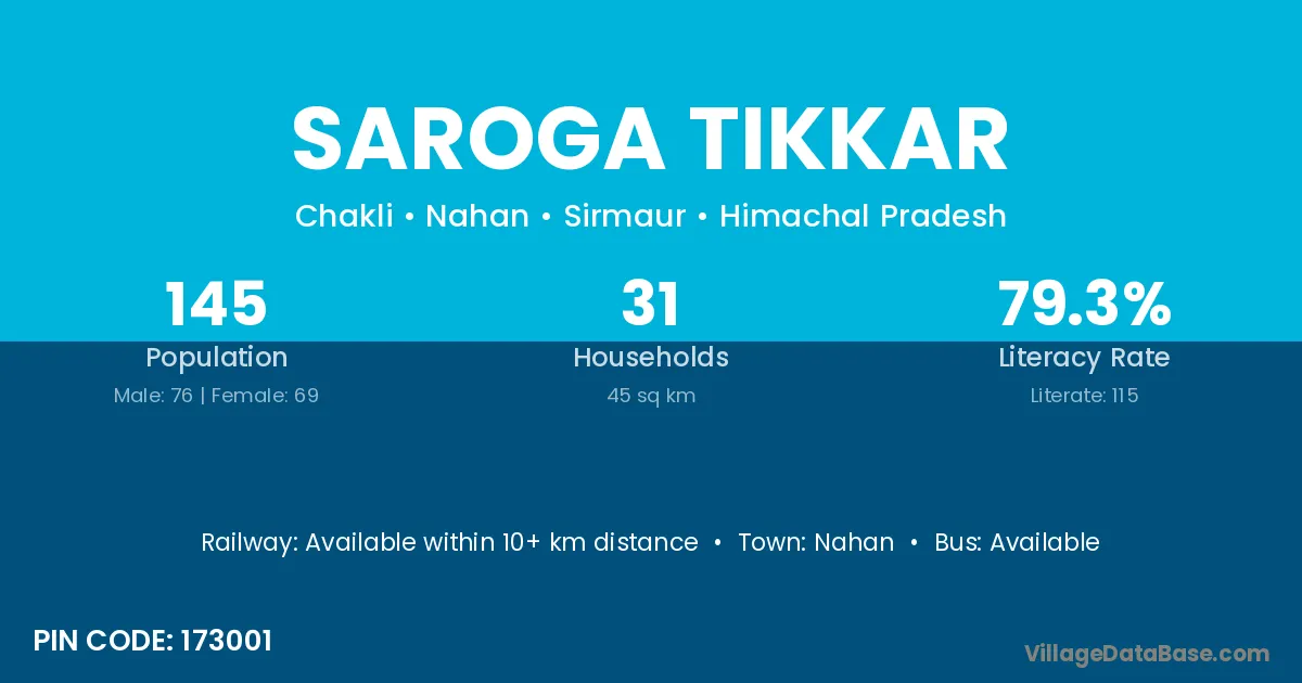 Nahan is the nearest town to Saroga Tikkar village for major economic activities