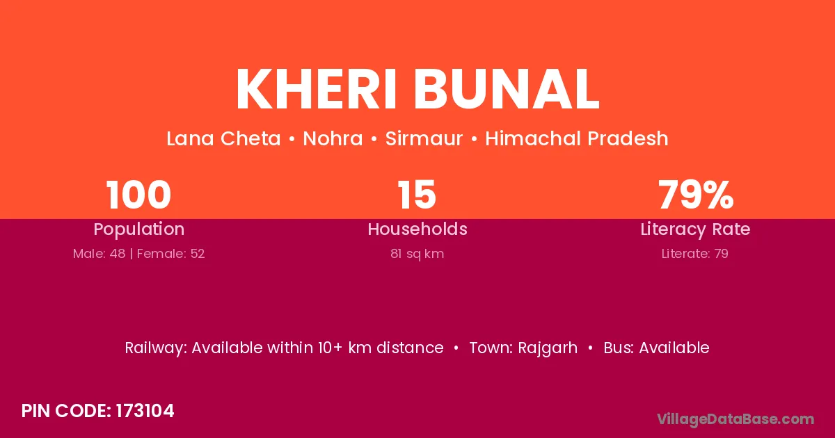 According to Census 2011 information, the village code of Kheri Bunal village is 173104.