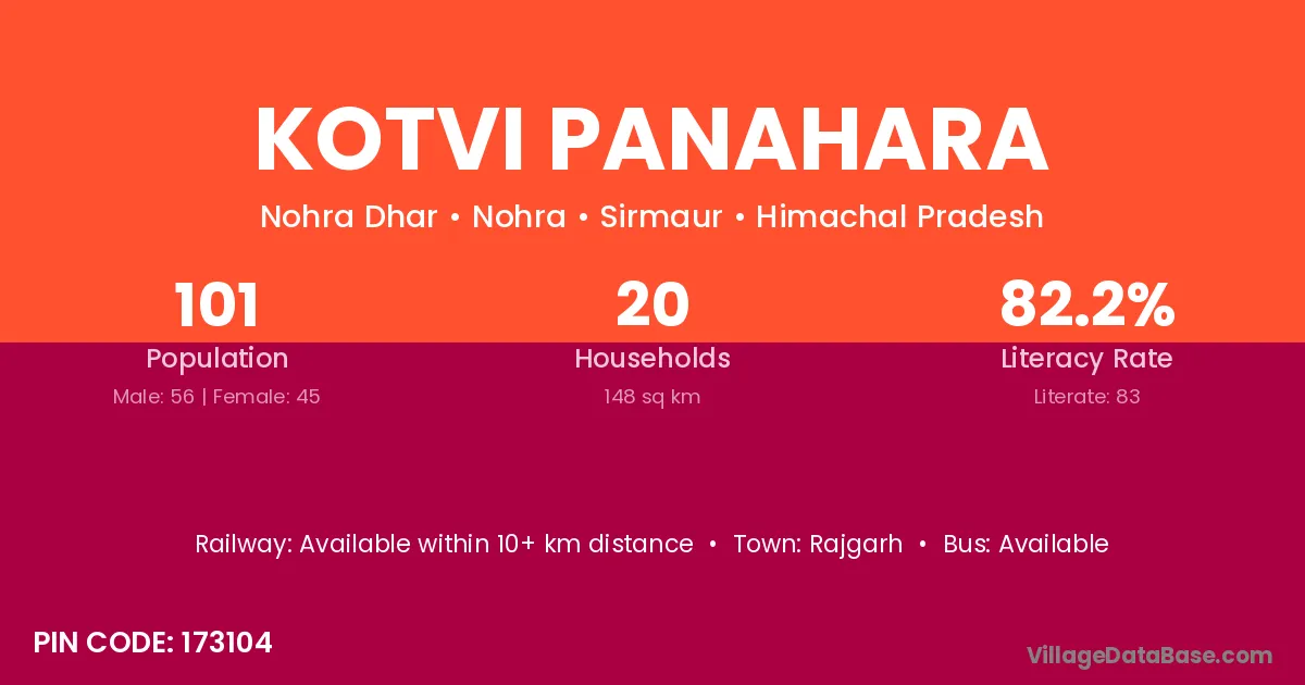 Kotvi Panahara village has a total population of 101 people, of which 56 are males and 45 are females.