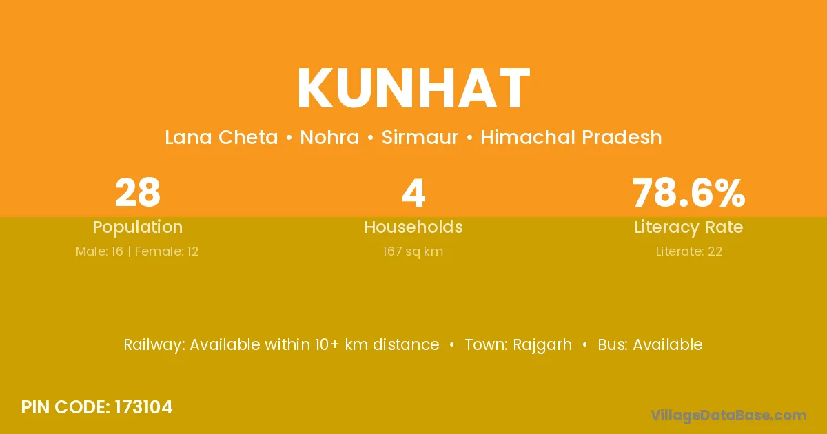 According to Census 2011 information, the village code of Kunhat village is 173104.