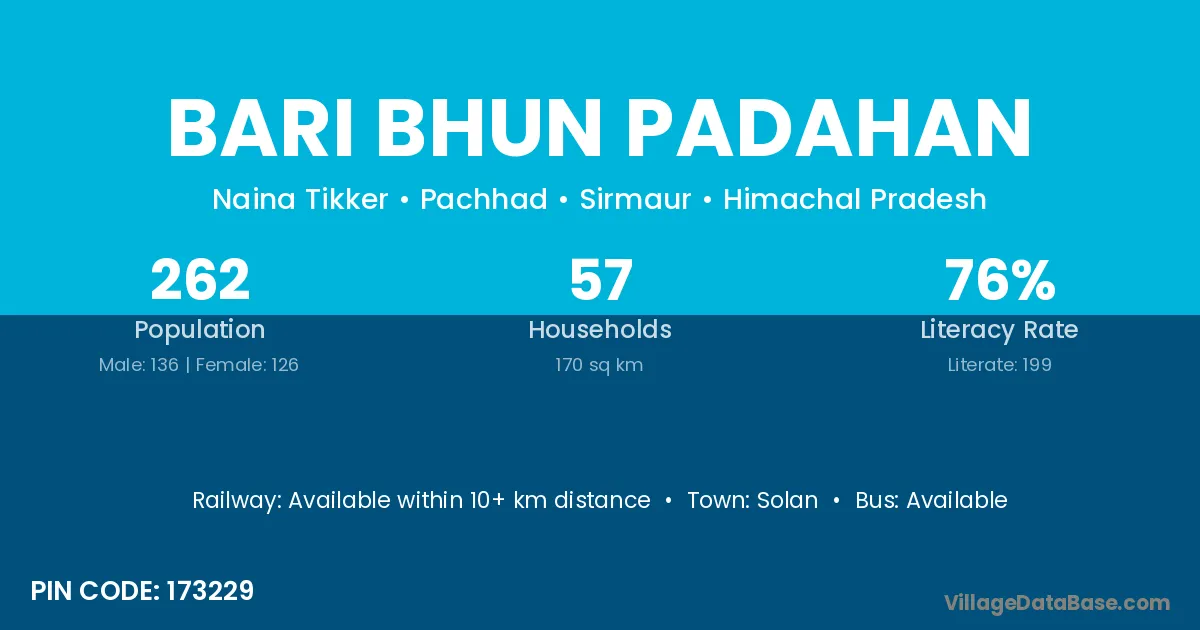 Solan is the nearest town to Bari Bhun Padahan village for major economic activities