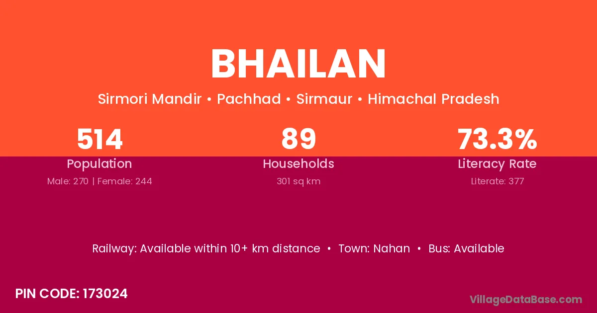 According to Census 2011 information, the village code of Bhailan village is 173024.