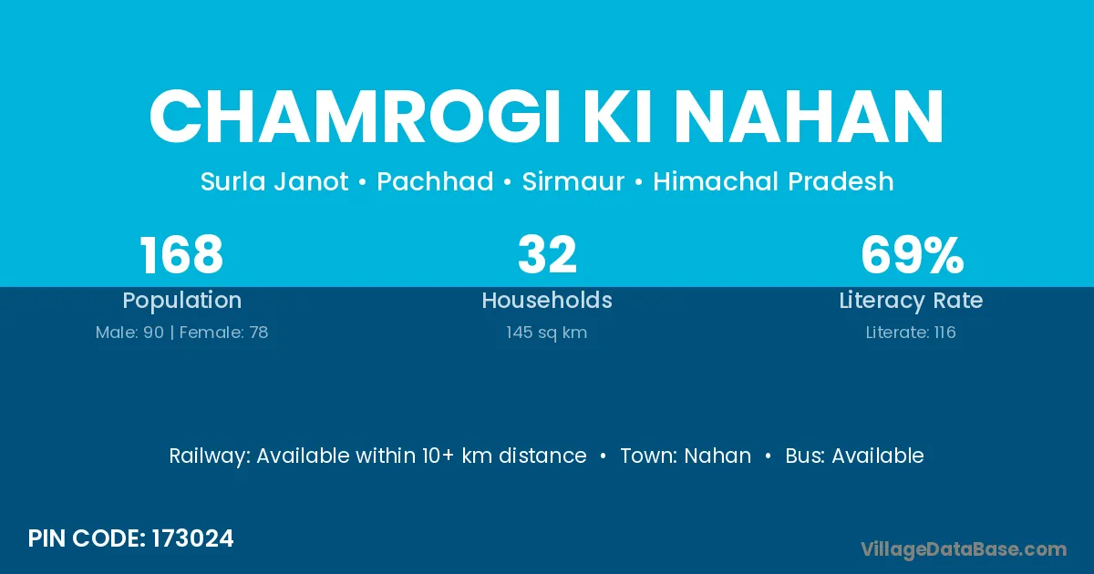 Nahan is the nearest town to Chamrogi Ki Nahan village for major economic activities