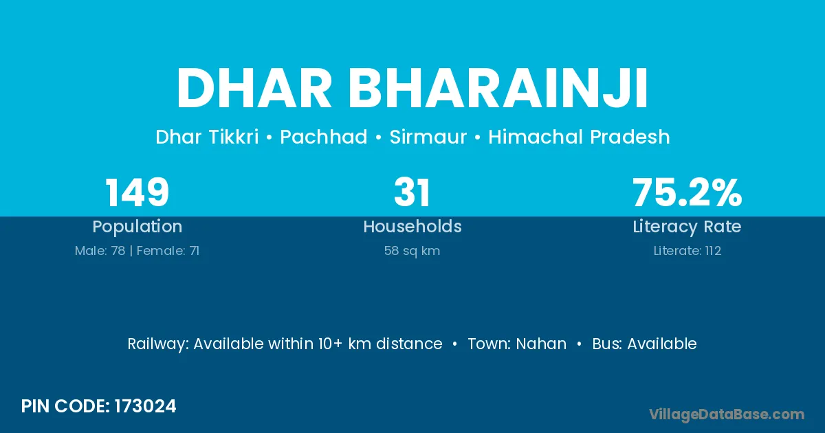 According to Census 2011 information, the village code of Dhar Bharainji village is 173024.
