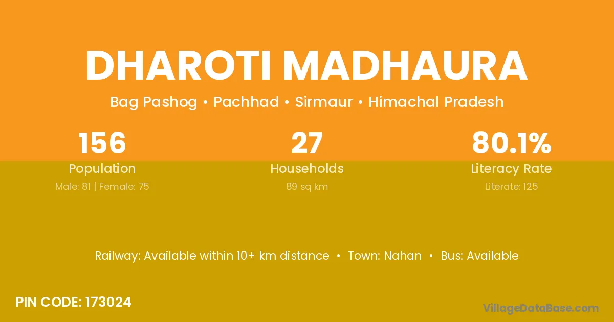 Nahan is the nearest town to Dharoti Madhaura village for major economic activities