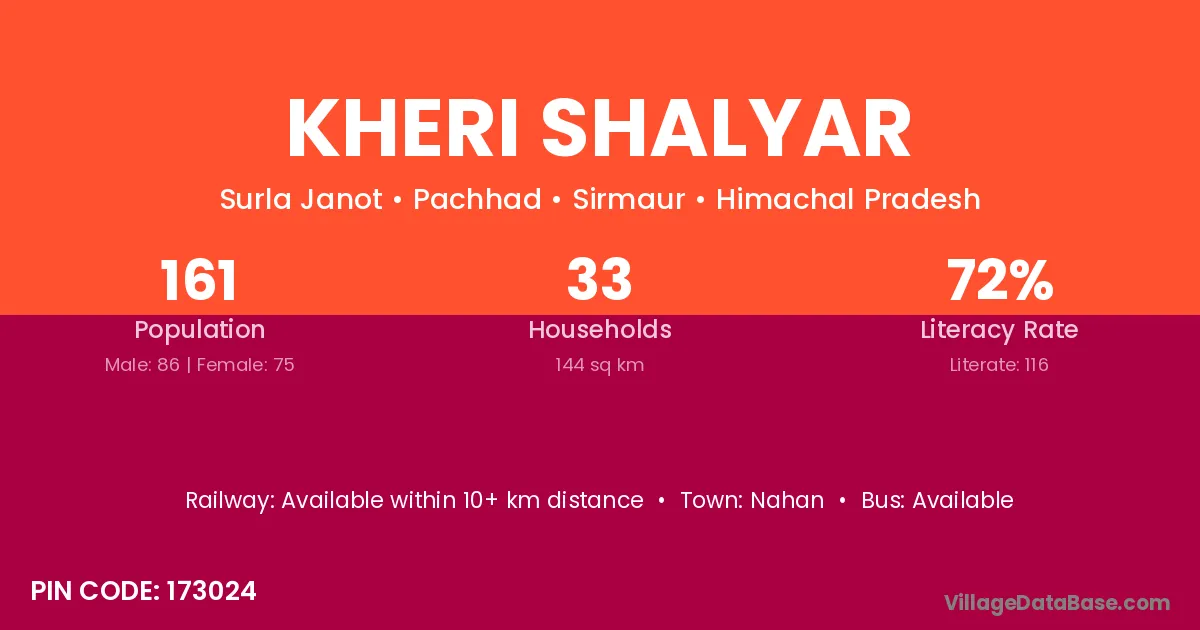 According to Census 2011 information, the village code of Kheri Shalyar village is 173024.