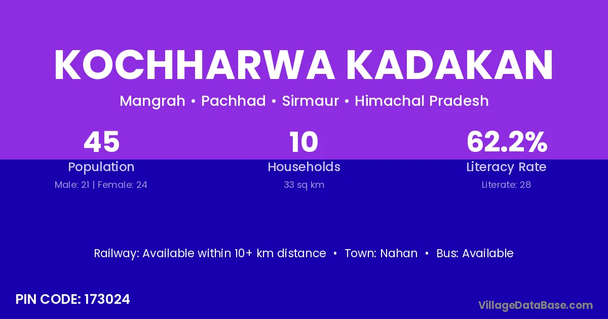 According to Census 2011 information, the village code of Kochharwa Kadakan village is 173024.