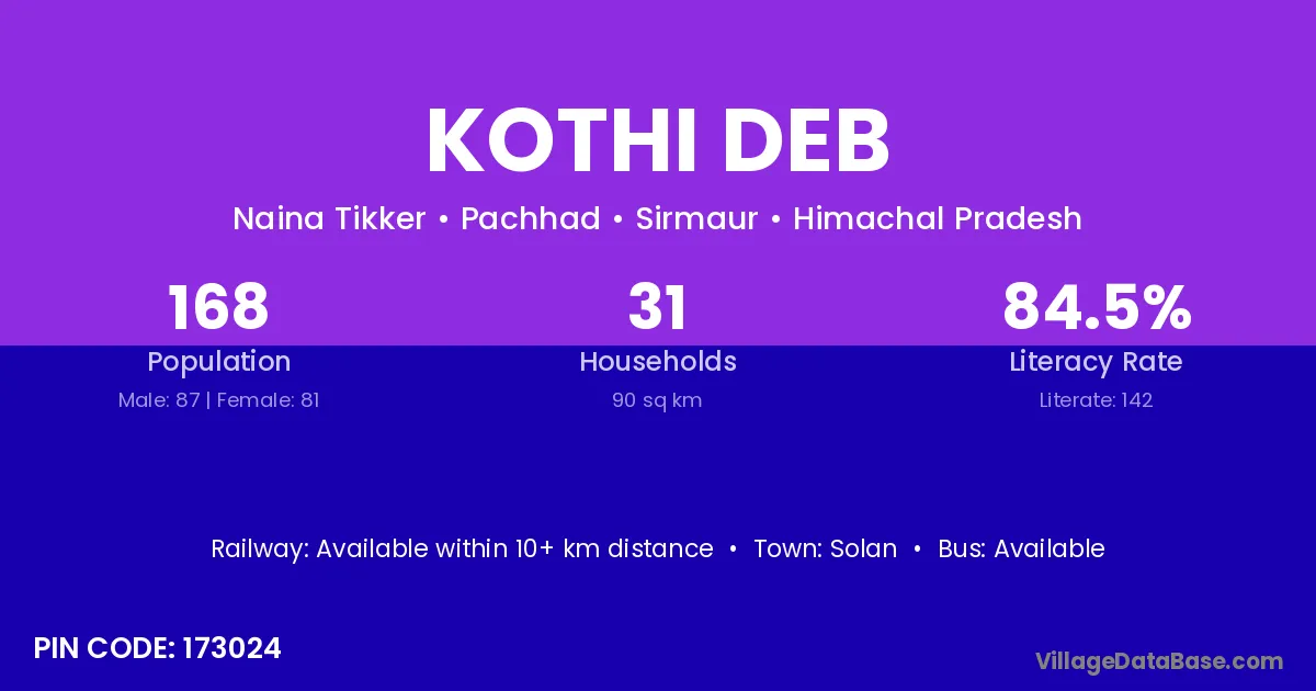 Solan is the nearest town to Kothi Deb village for major economic activities