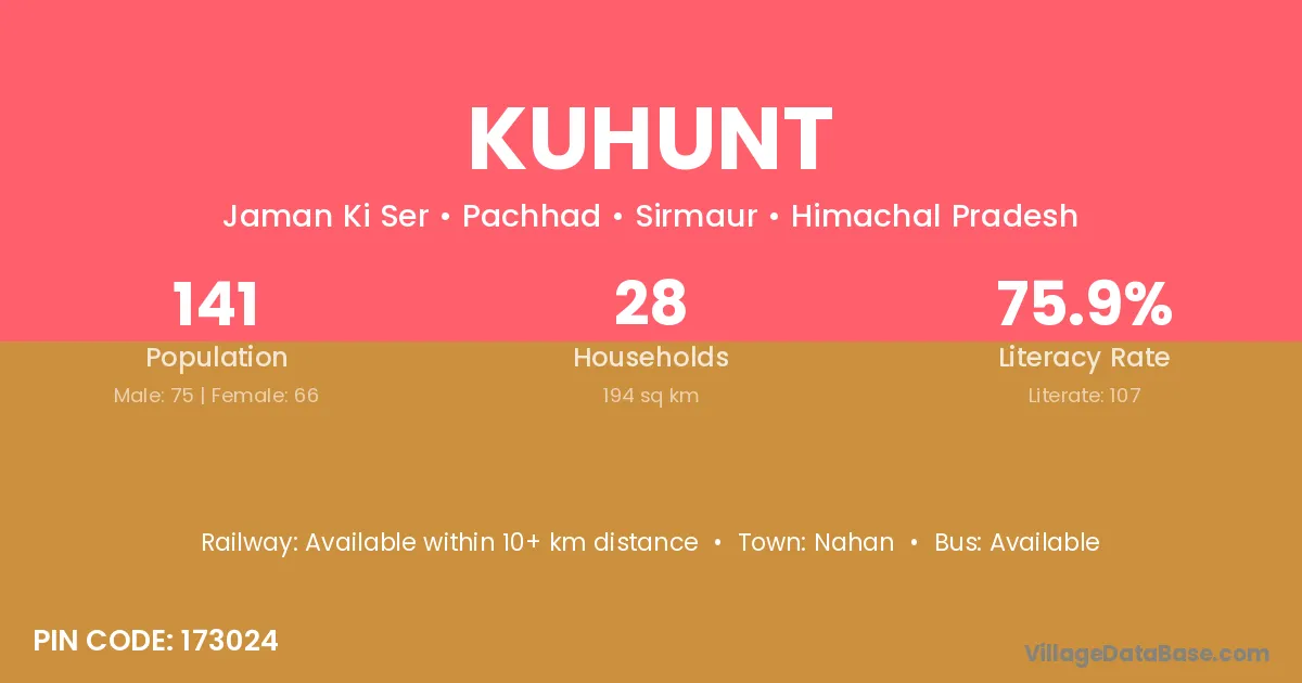 According to Census 2011 information, the village code of Kuhunt village is 173024.