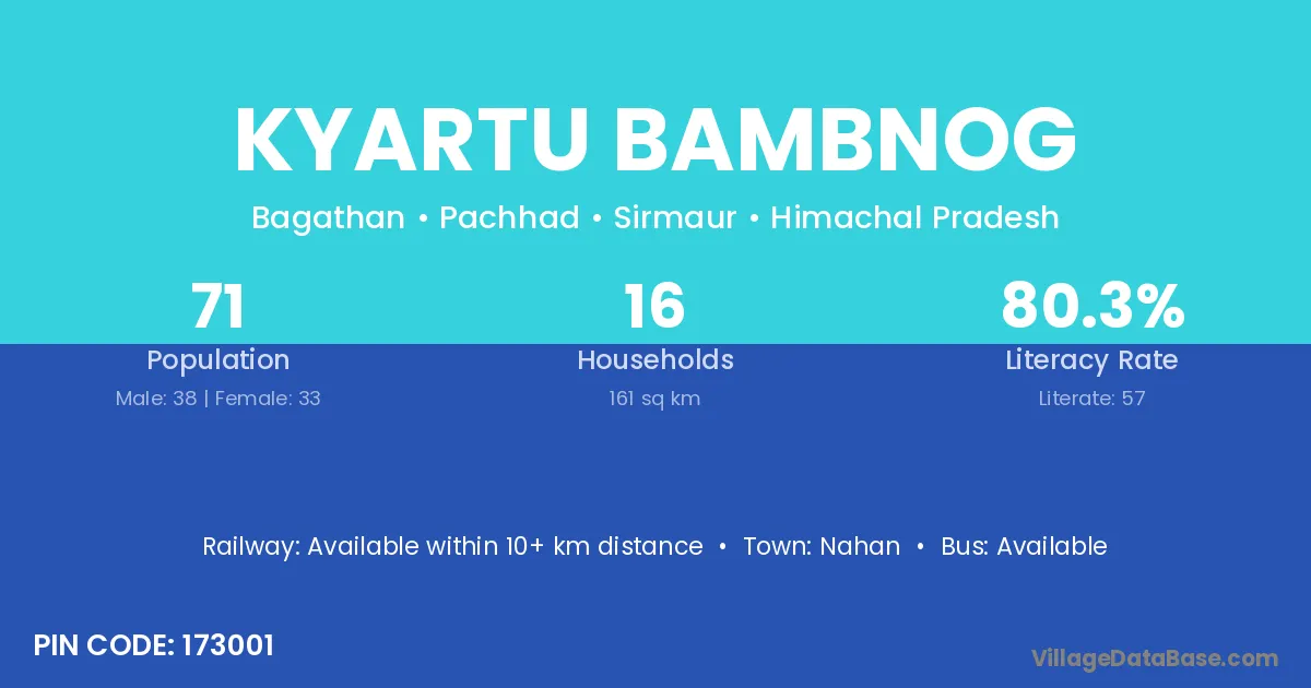 According to Census 2011 information, the village code of Kyartu Bambnog village is 173001.