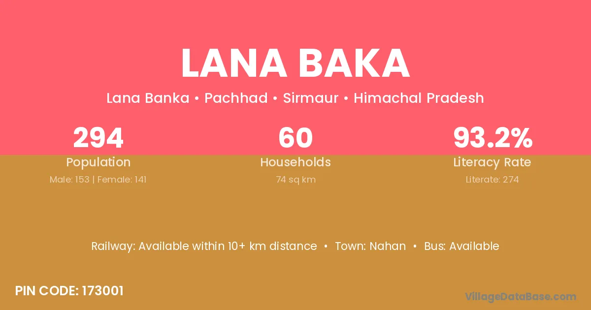 Lana Baka village has a total population of 294 people, of which 153 are males and 141 are females.
