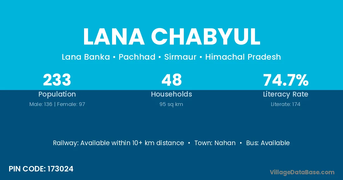 According to Census 2011 information, the village code of Lana Chabyul village is 173024.