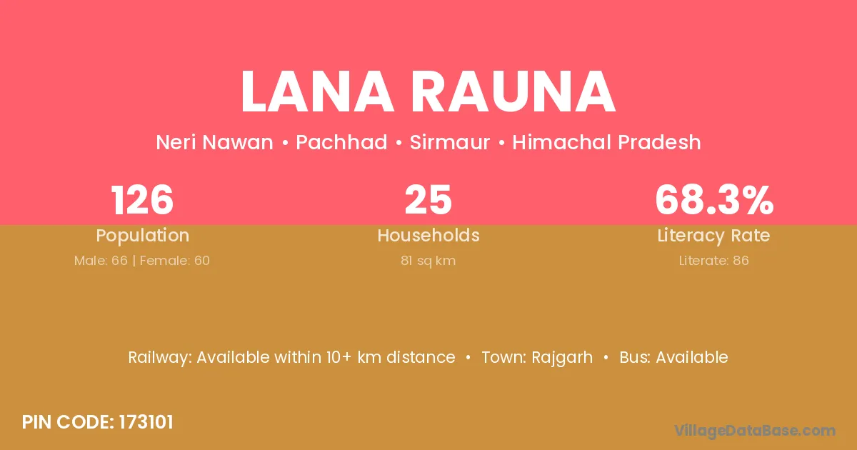 Rajgarh is the nearest town to Lana Rauna village for major economic activities