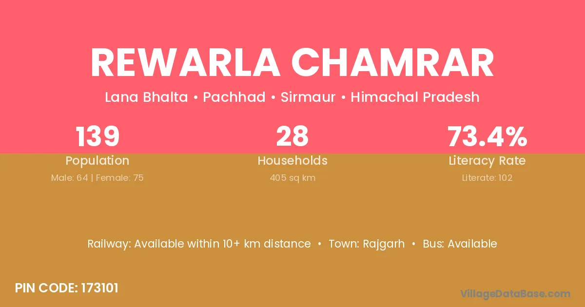 According to Census 2011 information, the village code of Rewarla Chamrar village is 173101.