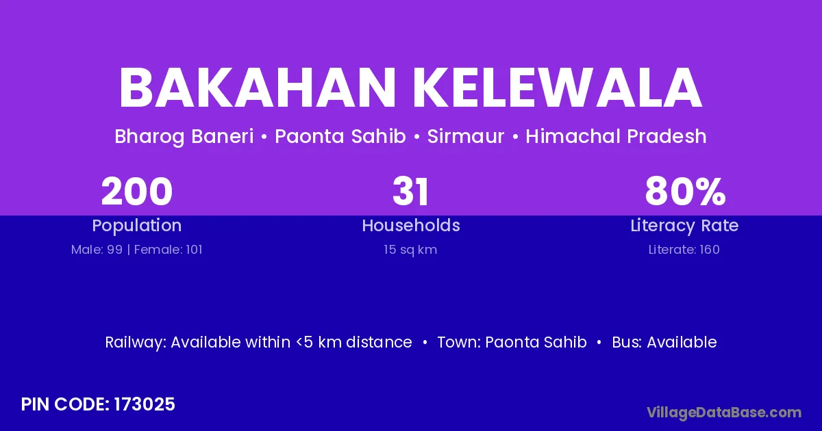Paonta Sahib is the nearest town to Bakahan Kelewala village for major economic activities