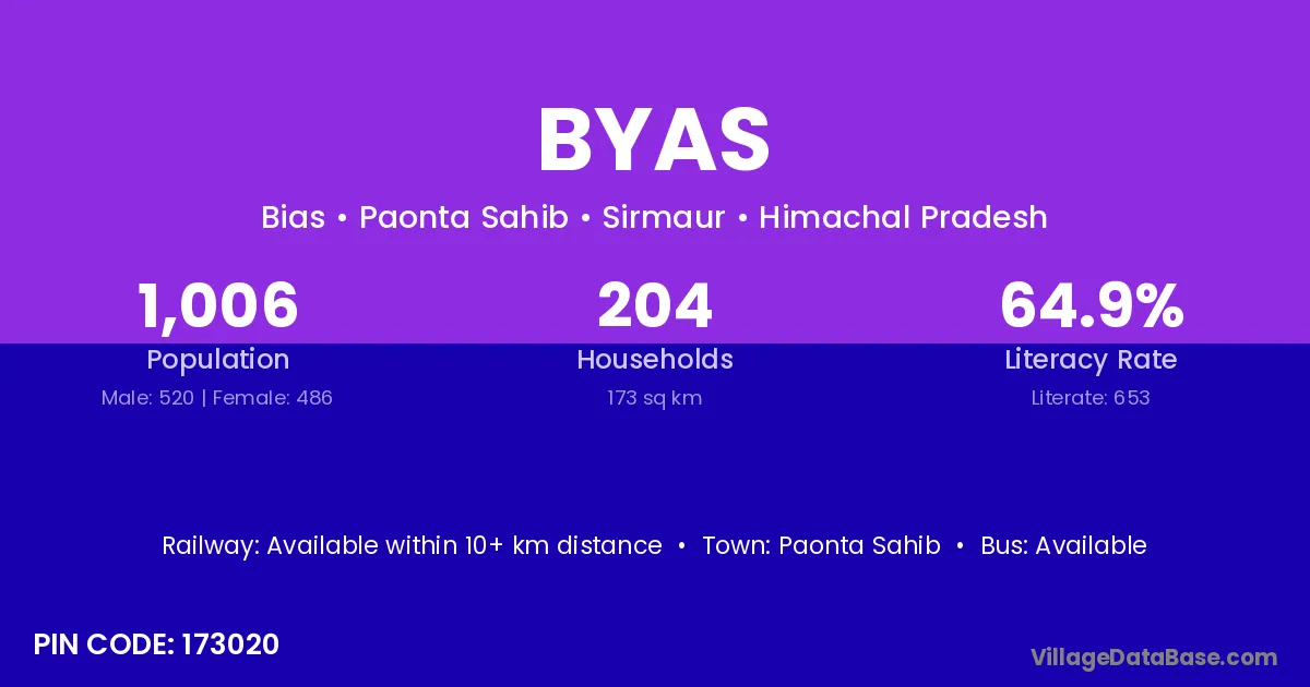 Paonta Sahib is the nearest town to Byas village for major economic activities