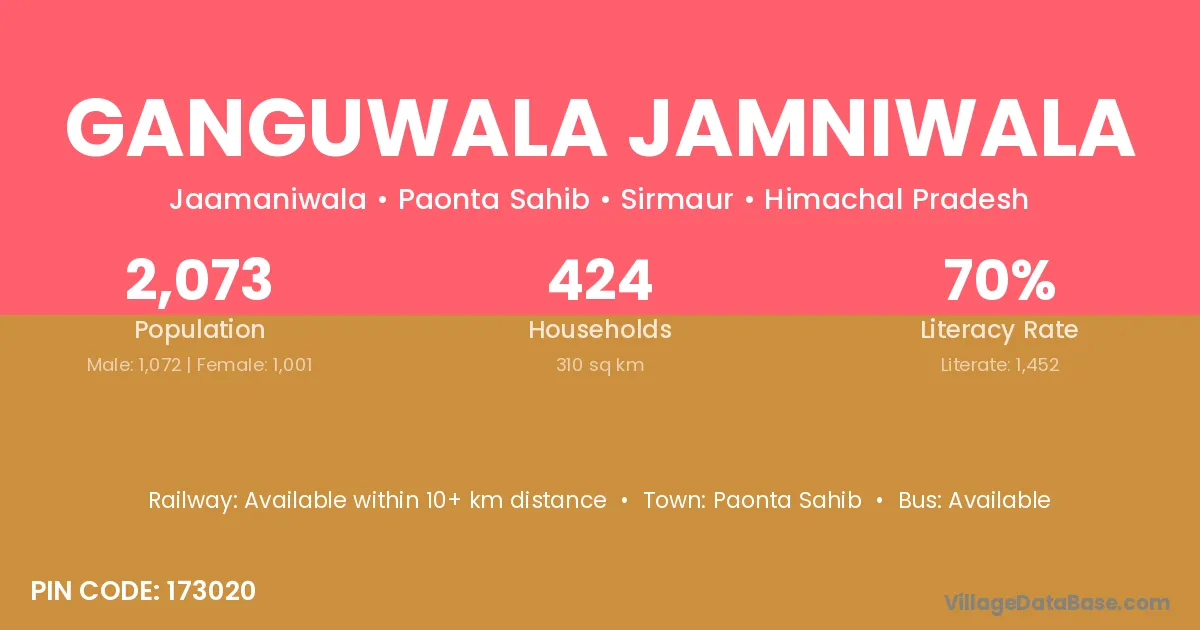 According to Census 2011 information, the village code of Ganguwala Jamniwala village is 173020.
