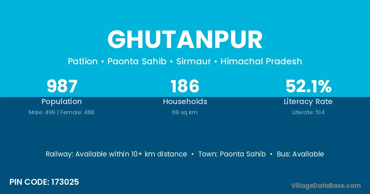 Paonta Sahib is the nearest town to Ghutanpur village for major economic activities