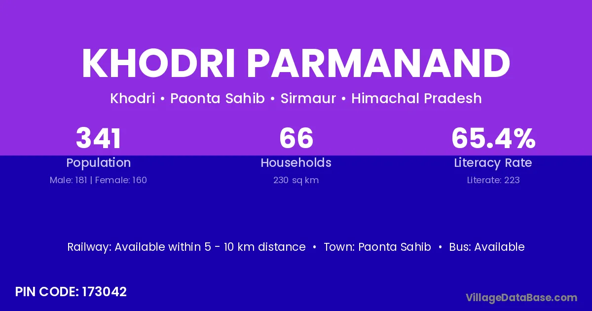 According to Census 2011 information, the village code of Khodri Parmanand village is 173042.