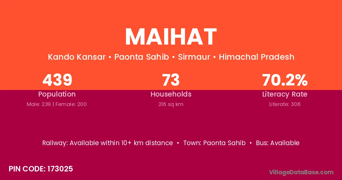 Paonta Sahib is the nearest town to Maihat village for major economic activities