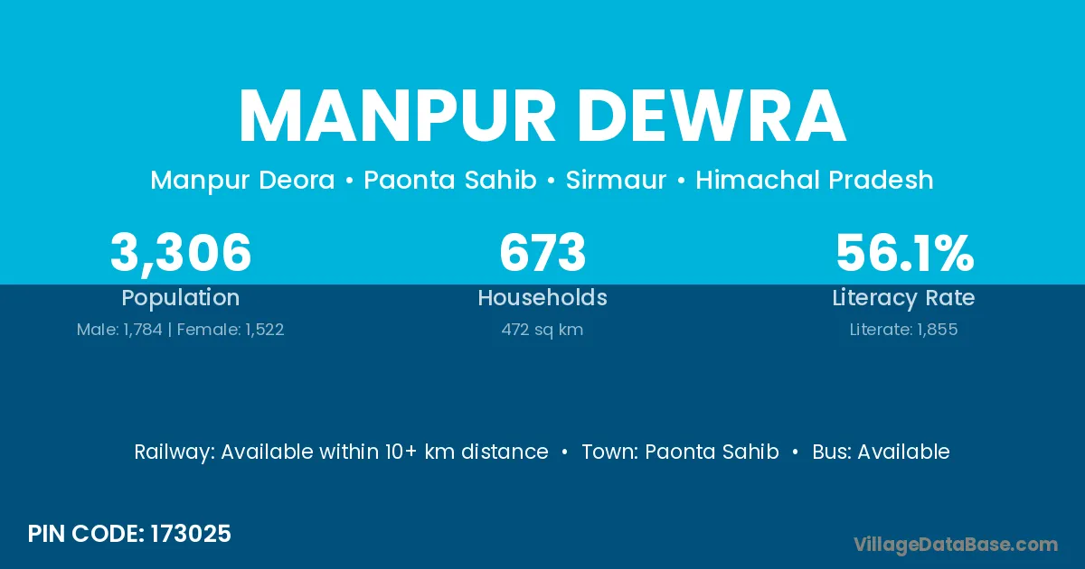 Paonta Sahib is the nearest town to Manpur Dewra village for major economic activities