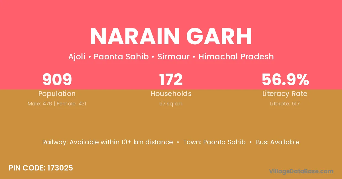 Paonta Sahib is the nearest town to Narain Garh village for major economic activities