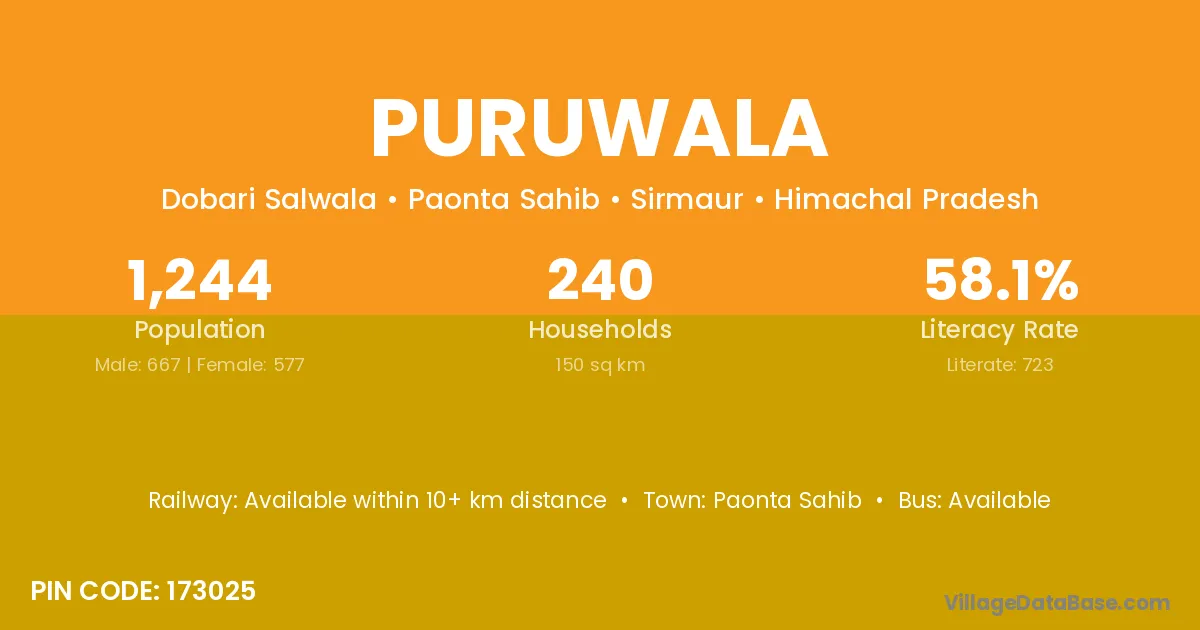 Paonta Sahib is the nearest town to Puruwala village for major economic activities