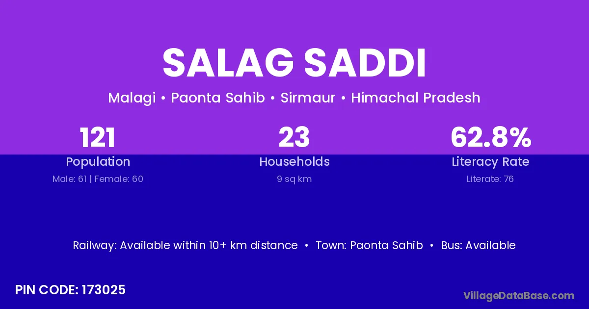 Paonta Sahib is the nearest town to Salag Saddi village for major economic activities
