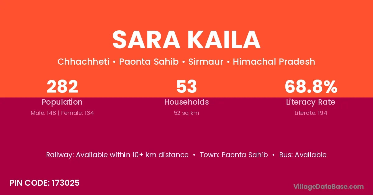 Paonta Sahib is the nearest town to Sara Kaila village for major economic activities
