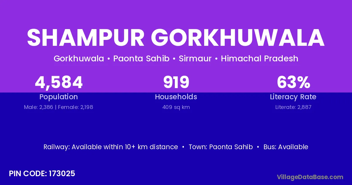 Paonta Sahib is the nearest town to Shampur Gorkhuwala village for major economic activities
