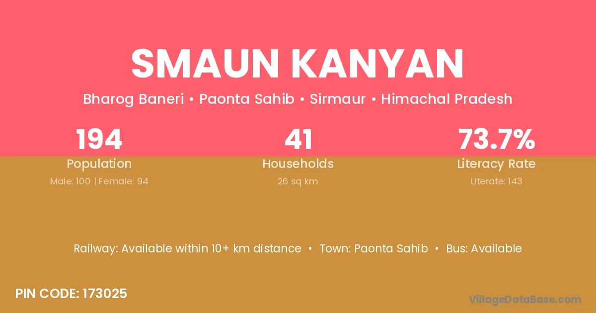 Paonta Sahib is the nearest town to Smaun Kanyan village for major economic activities