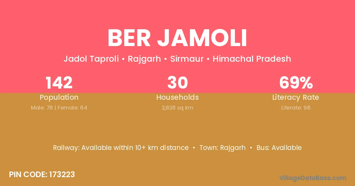 Rajgarh is the nearest town to Ber Jamoli village for major economic activities