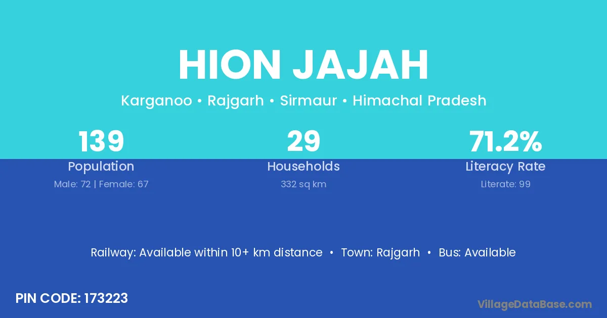 Rajgarh is the nearest town to Hion Jajah village for major economic activities