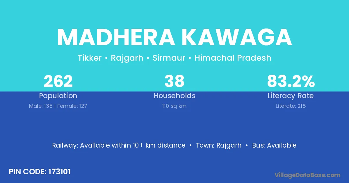 Madhera Kawaga village has a total population of 262 people, of which 135 are males and 127 are females.