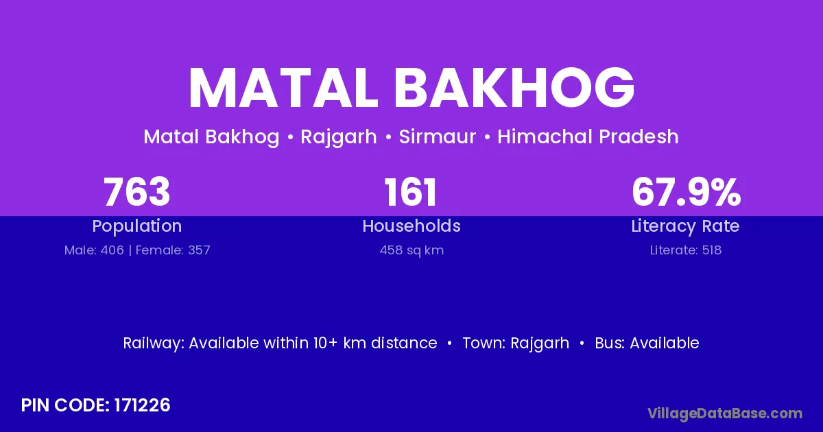 According to Census 2011 information, the village code of Matal Bakhog village is 171226.