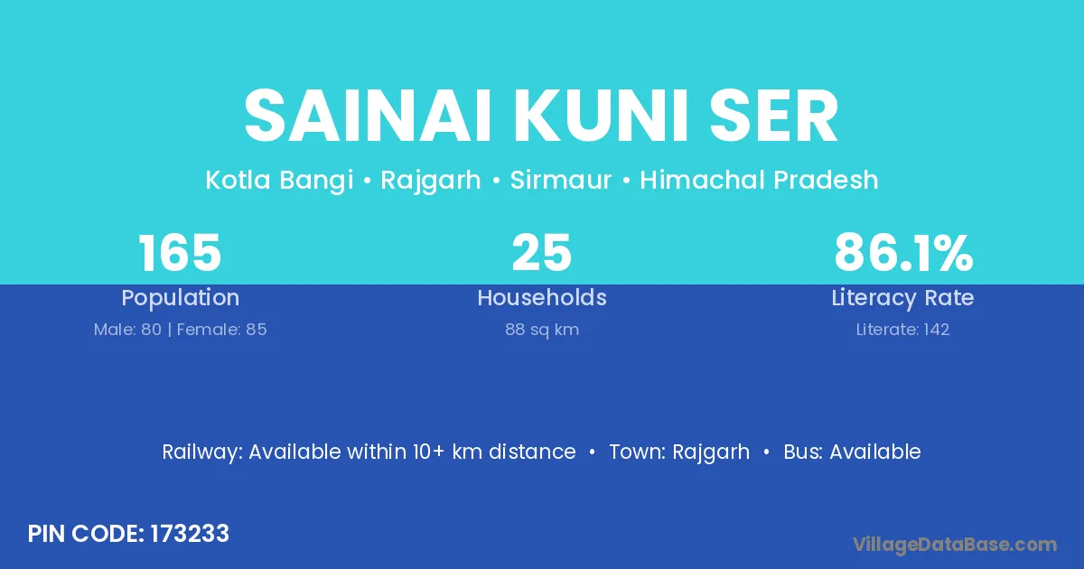 According to Census 2011 information, the village code of Sainai Kuni Ser village is 173233.