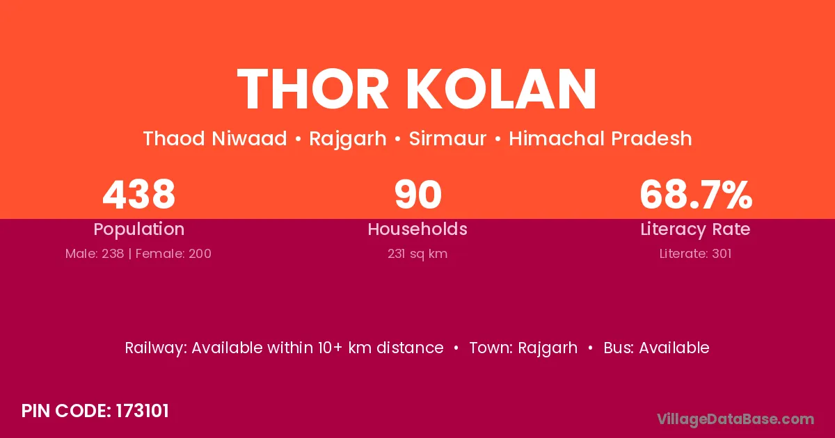 According to Census 2011 information, the village code of Thor Kolan village is 173101.