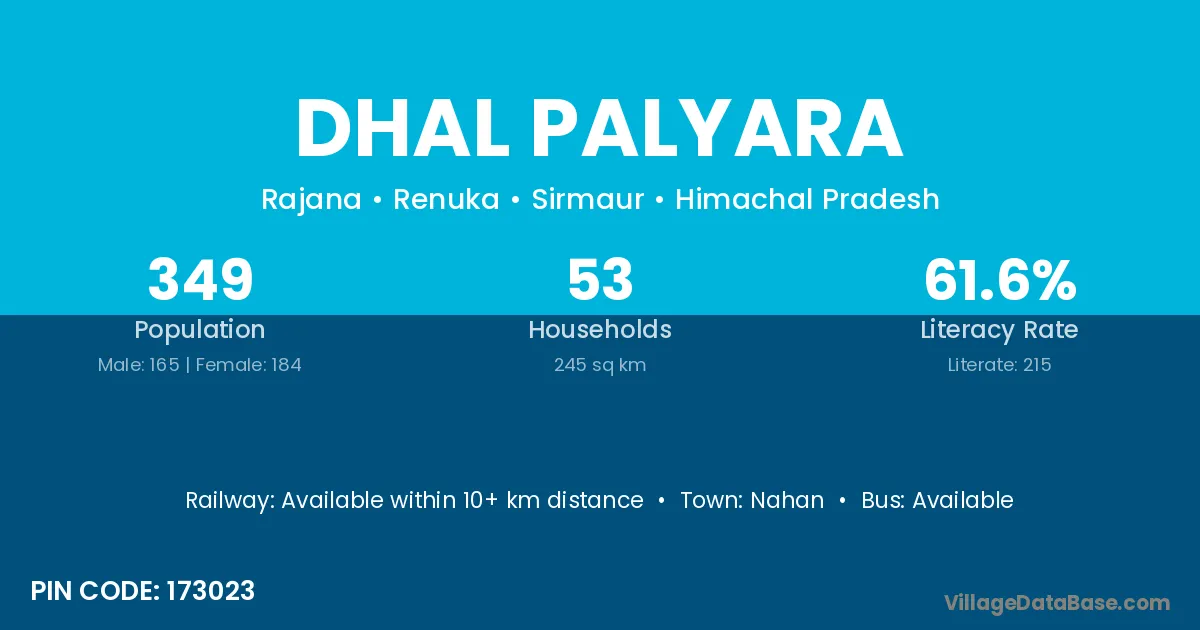 Dhal Palyara village has a total population of 349 people, of which 165 are males and 184 are females.