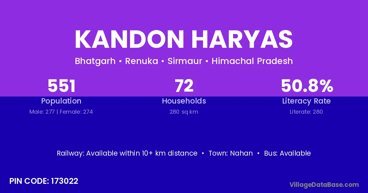 Kandon Haryas village has a total population of 551 people, of which 277 are males and 274 are females.